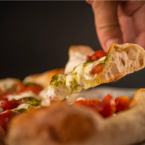 Pizza de tabuleiro italiana, mais alta e macia, com base crocante. Ideal para delivery e eventos, mantendo padronização e excelente margem.